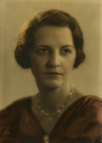 Description :PHOTO EN BUSTE DE MADAME EDNEY PORTANT ROBE DU SOIR ET COLLIER.
