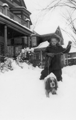 Description :ISABELLE EDNEY PREND LA POSE DEVANT 1178 DE LA RUE PROSPECT. ON APERCOIT LES DETAILS ARCHITECTURAUX DE SA MAISON AINSI QUE DE LA MAISON VOISINE DU 1192.