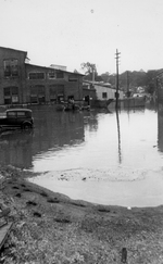 Description :1.1 VUE DE L'ARRIERE D'UN ATELIER MECANIQUE OU LA RIVIERE A ENVAHI LE STATIONNEMENT; 1.2 L'EAU PASSE EN ABONDANCE AU-DESSUS DU BARRAGE NO 4. A L'ARRIERE, LA KAYSER; 1.3 LA RIVIERE SAINT-FRANCOIS ET LE CHEMIN DE FER QUI LA LONGE, DANS LA P...