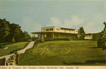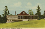 Description :LA CONSTRUCTION PRINCIPALE RESSEMBLE A UN CHALET AVEC UN TOIT A 2 PENTES. DE LARGES GALERIES ENTOURENT LE CLUB DE GOLF AVEC UNE VERRIERE DU COTE GAUCHE.