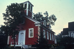 Description :ANCIENNE PETITE ECOLE EN BOIS DATANT DE 1933, PEINTE EN ROUGE ET BLANC. ELLE PORTE LE NOMERO CIVIQUE 1849. A L'ARRIERE-PLAN SUR LA DROITE, ON APERCOIT UNE PARTIE D'UNE PETITE EGLISE DE BOIS.