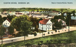 Description :PHOTO PRISE DE L'HOPITAL ST-VINCENT-DE-PAUL. EN AVANT-PLAN, LE RUE KING EST OU L'ON RETROUVE DES RESIDENCES, A GAUCHE LA RUE KING ET LE SITE DE L'EXPOSITION AGRICOLE EN ARRIERE-PLAN.