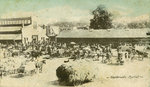 Description :FOULE ASSEMBLEE DANS LA GRANDE ESTRADE ET DERRIERE LES CLOTURES DE L'E.T.A.A. EN ARRIERE-PLAN, A GAUCHE, DES PERSONNES JUCHEES SUR UNE CLOTURE.