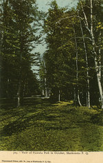 Description :VUE DE L'ENTREE DU PARC VICTORIA, LONG SENTIER LONGE D'ARBRES MATURES