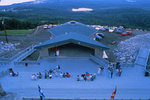 Description :VUE A VOL D'OISEAU DE L'AMPHITHEATRE EXTERIEUR DE LA MAISON DU GRANIT. EN ARRIERE-PLAN, LE BAS DE LA MONTAGNE AVEC 2 LACS.