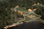 Description :VUE AERIENNE DES BATIMENTS ET TERRAINS DE LA BASE DE PLEIN AIR JOUVENCE AU PARC DU MONT-ORFORD, SUR LE BORD DU LAC STUKELY