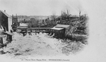 Description :VUE DE LA RIVIERE MAGOG, DU BARRAGE NO 2 ET D'UNE PASSERELLE. ON RECONNAIT, A DROITE, LA BATISSE DE L'AQUEDUC.