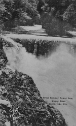 Sujet principal :VIEW OF MAGOG RIVER SHOWING POWER DAM, SHERBROOKE P.Q.
