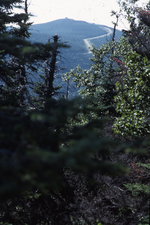 Description :VUE ELOIGNEE DU MONT MEGANTIC. ON VOIT LE CHEMIN QUI SILLONNE JUSQU'A L'OBSERVATOIRE.