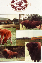 Description :2.1: PUBLICITE DU RANCH AVEC 4 PHOTOS DE BISONS. 2.2: VISITEURS PRES D'UN BISON. 2.3: OBSERVATION DE BISONS DANS LES CHAMPS. 2.4: FEMELLE BISON ET SON PETIT. 2.5: 3 BISONS VUS DE PRES.