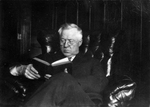Description :F.N. MCCREA, AGE, EST ASSIS DANS UN FAUTEUIL DE CUIR ET LIT.