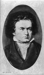 Description :SERIE DE CARTES POSTALES; TOUTES SUR LE MEME MODELE: PORTRAIT EN BUSTE D'UN COMPOSITEUR DANS UN OVALE BOMBE. LE CONTOUR IMITE UN PASSE-PARTOUT ET UN CADRE DE BOIS, EUX AUSSI BOMBES DANS UN CARTON. 1.1: LUDWIG BEETHOVEN.1.2: FREDERICK CHOPIN. 1...