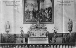 Description :CHOEUR DE LA CHAPELLE AVEC SON AUTEL SURMONTE D'UNE STATUE DU SACRE-COEUR. ET AU MUR, UNE PEINTURE DE LA SAINTE FAMILLE, ET DE JESUS GUERISSANT LES MALADES. A L'EXTREME GAUCHE, UNE STATUE DE LA VIERGE, ET A L'EXTREME DROITE, UNE STATUE DE SAIN...