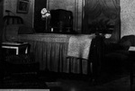 Description :NNGF271: CHAMBRE PRIVEE. MEUBLES ORNES, RIDEAUX DRAPES, LAMPE FIORITUREE, ETC. NNGF272: CHAMBE DE "TRAVAIL" AU NOUVEAU SERVICE D'OBSTETRIQUE DU 3E ETAGE. LIT EN FER TRES ETROIT, PETITE TABLE DE CHEVET ET UNE LAMPE AU PLAFOND.