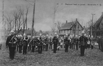 Description :PLAN ELOIGNE DE LA FANFARE MILITAIRE. EN ARRIERE-PLAN, QUELQUES MAISONS DE LA RUE MOORE. QUELQUES PERSONNES ASSISTENT A LA FANFARE.