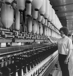 Description :3.1: USINE MODERNE DE FILATURE OU UNE JEUNE FILLE VERIFIE DES BOBINES. 3.2: USINE MODERNE OU DES BANDES DE TISSUS ETROITES SONT TISSEES. IL PEUT S'AGIR DE LA GARLOCK QUI FABRIQUE DES FILS ET DES TISSUS D'AMIANTE.