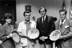 Description :2.1: LE MAIRE JACQUES O'BREADY REMET DES ASSIETTES DECORATIVES AUX GAGNANTS DU CONCOURS. A GAUCHE, MADAME MONIQUE MORIN. 2.2: MEME SITUATION, MAIS LE PRIX REMIS EST UNE HORLOGE EN BOIS SCULPTE. L'HOMME DE GAUCHE EST MONSIEUR ? STEINMAN. 2.3...