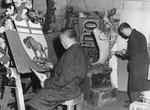 Description :1.1: ANTONIO MONTOUR, JEAN MONTOUR, LAURENT MONTOUR, EDDY CHARRON ET A DROITE A GENOUX, DENIS DUTIL. ILS FABRIQUENT LE CHAR #1 DE LA PARADE DE 1957 ®SA MAJESTE, LA LANGUE FRANCAISE¯. 1.2: ANTONIO MONTOUR DESSINANT UNE ARMOIRIE POUR UN CHAR...
