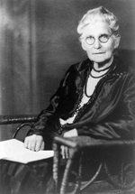 Description :ELIZABETH JEMINA BONNALLIE VERS L'AGE DE 75 ANS, ASSISE DANS UN FAUTEUIL EN ROTIN. ELLE PORTE DES LUNETTES RONDES ET SES CHEVEUX BLANCS REMONTES EN CHIGNON. PERLES NOIRES AU COU, ROBE DE SATIN NOIR OUVERTE.