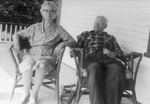 Description :COUPLE AGE ASSIS SUR UNE VERANDA DANS DES CHAISES DE ROTIN. PAR TERRE, ENTRE LES DEUX CHAISES, ON PEUT VOIR UNE PAIRE DE BEQUILLES.