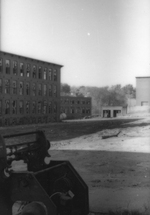 Description :DEUX PRISES DE VUE DIFFERENTES SUR DEUX BATIMENTS DESAFFECTES, MURS BRISES, FENETRES CASSEES. IL S'AGIT DU BATIMENT NO 6, A GAUCHE, ET DU BATIMENT NO 1. 4.1: EN ARRIERE PLAN, SUR LA GAUCHE, ON APERCOIT LA COOP AGRICOLE.