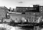 Description :A PARTIR DE LA RUE RICHMOND, SUR L'AUTRE RIVE DE LA RIVIERE MAGOG, VUE SUR DES GROUPES DE BATIMENTS DE LA PATON. AU PREMIER PLAN, LES REMOUS APRES LES CHUTES DU BARRAGE NO 1.