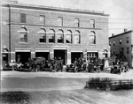 Description :FACADE DU POSTE DE POMPIERS NO 1 EN BRIQUES A TROIS ETAGES. DEVANT, CINQ CAMIONS A INCENDIE, UNE VOITURE ET DEUX MOTOCYCLETTES. A GAUCHE, DANS LA VOITURE DU CHEF, ON PEUT VOIR CELUI-CI, H.O. CAMIRAND, ET LE SOUS-CHEF PRUNIER. SUR LE PREMIER CA...