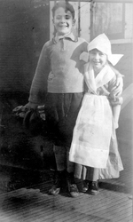 Description :21.1 ET 21.2: PHOTOS PRISES LE 23 MARS 1924. GUY ET SA SOEUR SONT COTE A COTE. GUY PORTE DES GUETRES ET UNE CASQUETTE. PAULINE, UN MANTEAU ET BONNET ASSORTI. SUR LA PHOTO 21.2, LES ENFANTS SONT PRES DE LA PORTE ARRIERE DE LEUR MAISON DE LA RUE...