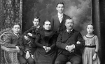 Description :PHOTO DE STUDIO. AU CENTRE, GEORGINE CAMIRAND ET SON EPOUX LEONILDE-CHARLES BACHAND. A GAUCHE, ASSIS DANS UN FAUTEUIL DE ROTIN: CHARLES-EMILE, AGE D'ENVIRON 13 ANS. LEONIDAS, AGE D'ENVIRON SIX ANS, EST DEBOUT SUIVI DE JOSEPH-DENONVILLE, AGE D...