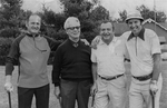 Description :DENIS CROTEAU, IVAN BOISVERT, YVON ELLYSON ET ANDRE COURNOYER DEBOUT AVEC LEUR BATON DE GOLF EN MAIN.