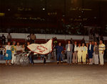 Description :SUR UNE PISTE DE COURSE, UN HOMME ? TIENT PAR LA BRIDE UN CHEVAL ATTELE A UN CAROSSE?. LE CHEVAL EST RECOUVERT D'UNE JAQUETTE BLANCHE AVEC UNE BORDURE ROUGE ET UNE INSCRIPTION EN ROUGE EGALEMENT DU CLUB DE REFORME INC. SHERBROOKE, 1985. LE COU...