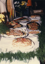 Description :1.1: VUE SUR LE BUFFET OFFERT POUR CETTE RECEPTION. 1.2: 5 HOMMES DISCUTENT DEBOUT, UN VERRE A LA MAIN. DE GAUCHE A DROITE, GILLES ROUTHIER, JACQUES LEMIEUX, INGENIEUR A TEKNIKA, M. GAUTHIER, FLEURISTE, ?, PAUL MCKEENA, FLEURISTE. A L'ARRIERE-...