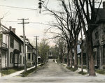 Description :UNE PARTIE DE LA RUE COURT ALORS QU'ELLE ETAIT EN TERRE. ON APERCOIT UNE PARTIE DE LA MAISON D'ISRAEL WOOD ( A GAUCHE), DU CLUB ST.GEORGE'S (A DROITE) ET DU MANEGE DU 53e REGIMENT (AU FOND)