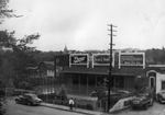 Description :DEVANT LES GARAGES DE LA COMPAGNIE, ACCUMULATION D'EAU. SUR LE TROTTOIR LISE BOISVERT DONNE LA MAIN A SON ONCLE ODILON GAGNON.