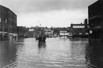 Description :10.1: COIN KING ET GRANDES-FOURCHES, L'EAU FAIT PLUSIEURS PIEDS DE HAUT. DES GENS SONT TRANSPORTES SUR UNE CHARETTE. SONT VISIBLES: LA CIE WALTER BLUE, LA FERRONNERIE BOURQUE, LE MARCHE LANSDOWNE ET L'HOTEL NEW SHERBROOKE. - 10.2: LES ALENTOUR...