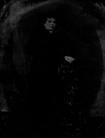 Description :PHOTO DE STUDIO: ODILON GAGNON APPUYE SUR UNE CONSOLE EN FORME DE COLONNE REGARDE L'OBJECTIF DE LA CAMERA.