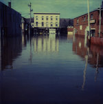 Description :2.1: VUE D'UN STATIONNEMENT INONDE. AU FOND, RUE PRINCIPALE AVEC LE COMMERCE RICHMOND SPORT INC. - 2.2: CARREFOUR CRAIG-PRINCIPALE. LE POSTE DE POLICE EST A GAUCHE. LA CANTINE DU FOND EST SUBMERGEE.