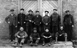 Sujet principal :GROUPE D'OUVRIERS DEVANT LA "MACHINE SHOP" DE LA RAND
