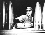 Description :3.1 - HOMME A CASQUETTE MESURANT LA CONFIRMITE DU DIAMETRE D'UN OBUS. 3.2 - HOMME EVALUANT LE FUSELAGE D'UN OBUS. 3.3 - DEUX FEMMES CIRCULENT PARMI UN GRAND NOMBRE D'OBUS EN PRENANT DES NOTES.