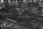 Description :OUVRIERS CONTROLENT MACHINERIES. VUE INTERIEURE DU BATIMENT.