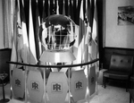 Description :VESTIVULE DE LA INGERSOLL-RAND. GLOBE TERRESTRE MONTE SUR UN SOCLE. DRAPEAUX DE PAYS EN ARRIERE. LOGO DE LA RAND EN FACE DUN SOCLE.