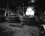 Description :6 TRAVAILLEURS DE LA FONDERIE EN ACTION AU BATIMENT NO 18. CES TRAVAILLEURS COULENT L'ENORME CHASSIS D'UN COMPRESSEUR. TRES BELLE SCENE. LE FONDEUR DE GAUCHE, BIEN VISIBLE, EST ADEGARD SAINT-CYR.