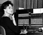 Description :TELEPHONISTE DEVANT POSTE DE TRANSMISSION.