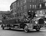 Notes :CAMION DE POMPIER 1929 DU POSTE NO 1; 3 VITESSES AVANT ET 1 VITESSE ARRIERE. POIDS: 12 TONNES. LORSQUE LE CAMION TOURNE, LE CONDUCTEUR ARRIERE TOURNE LE VOLANT DU COTE OPPOSE A CELUI DU CONDUCTEUR AVANT. DEFILE DURANT LA SEMAINE DES INCENDIES ...