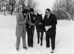 Description :"GREAT MUTT", LE POULAIN DE LUCIEN LACHANCE SE FAIT PRESENTER. DE GAUCHE A DROITE, CLAUDE "MUTT" DUSSAULT, JACQUES LACHANCE "GREAT MUTT" ET LUCIEN LACHANCE.