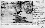 Description :VUE SUR LA RIVIERE MAGOG L'HIVER, EN PARTIE RECOUVERTE DE GLACES ET DE NEIGE. A L'ARRIERE-PLAN, QUELQUES MAISONS, PROBABLEMENT SITUEES SUR LA RUE RICHMOND.