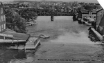Description :PHOTOGRAPHIE DES RAPIDES DE LA RIVIERE MAGOG. DE CHAQUE COTE, ON VOIT DES BATIMENTS INDUSTRIELS: A GAUCHE, LA CENTRALE DE LA SHERBROOKE STREET RAILWAY, A DROITE LA CORSETTERIE. AU FOND, LE BARRAGE NO 4.