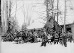 Description :UN GROUPE DE RAQUETTEURS RASSEMBLES DEVANT LE CLUB TUQUE ROUGE