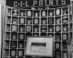 Description :DES PRODUITS C.I.L. SONT ETALES SUR UNE TABLE. LE LOGO C.I.L. PAINTS EST MIS EN EVIDENCE A LA PARTIE SUPERIEURE DU KIOSQUE. AUCUNE REFERENCE A NATIONAL WALLPAPER.