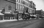 Description :VUE DU NORD VERS LE SUD DE LA RUE WELLINGTON NORD COTE EST. ON APERCOIT QUELQUES DEVANTURES DE COMMERCES DONT CELLE DU NATIONAL WALLPAPER. UNE DAME TRAVERSE LA RUE ET QUELQUES AUTOS SONT STATIONNEES SUR LE COTE EST DE LA RUE. PRESENCE D'UNE F...